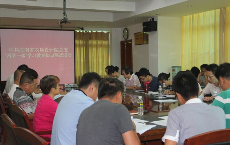 為把“兩學(xué)一做”教育活動(dòng)落實(shí)到位,2016年7月25日上午9點(diǎn),院總支組織開(kāi)展 “兩學(xué)一做” 學(xué)習(xí)教育知識(shí)測(cè)試活動(dòng),全體在崗黨員參加了此次測(cè)試。總支副書(shū)記江國(guó)買(mǎi)在測(cè)試前強(qiáng)調(diào)“兩學(xué)一做”,基礎(chǔ)在學(xué),關(guān)鍵在做。全體黨員要緊緊圍繞“學(xué)”字下功夫,做到知行合一。本次測(cè)試的目的就是檢驗(yàn)學(xué)習(xí)的效果,摸清自學(xué)情況,切實(shí)確保每名黨員有所學(xué)有所獲。本次測(cè)試也是選拔人員參加8月份農(nóng)墾投資控股集團(tuán)“兩學(xué)一做”知識(shí)競(jìng)賽的依據(jù)之一。